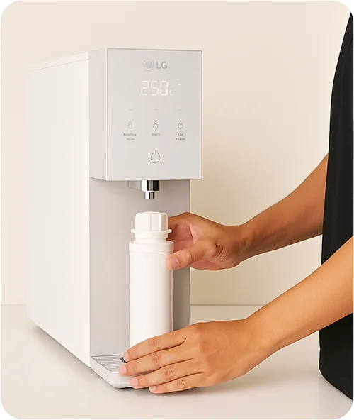 Use the LG ThinQ™ app on your smartphone to easily check the status of your LG water purifier from anywhere in real time.5)